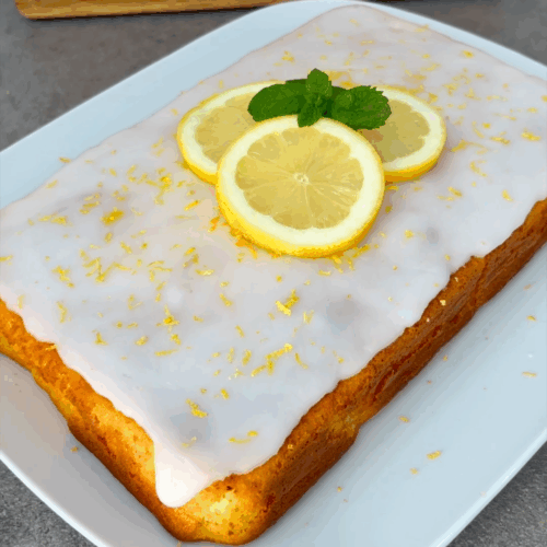 Dekoriere den Kuchen nach Belieben mit frischer Zitronenzeste oder Zitronenscheiben. Jetzt ist der saftige Zitronenkuchen bereit zum Servieren, guten Appetit!